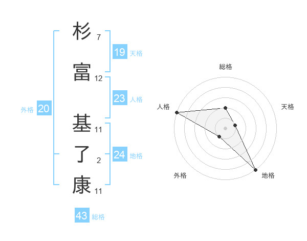 杉富 基了康さんを姓名の画数から五運を鑑定