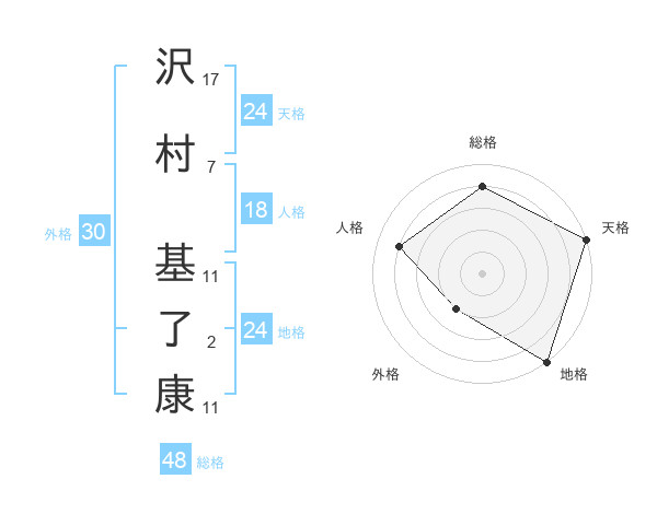 沢村 基了康さんを姓名の画数から五運を鑑定