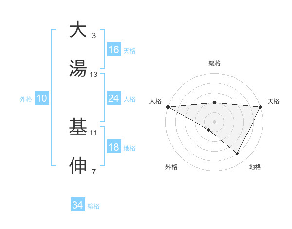 大湯 基伸さんを姓名の画数から五運を鑑定