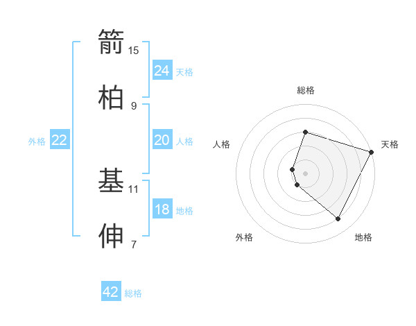 箭柏 基伸さんの総格は42画の3点!