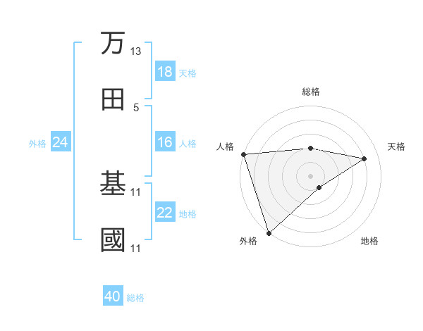 万田 基國さんの総格は40画の2点!