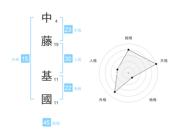 中藤 基國さんの天格は23画の5点!