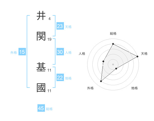 井関 基國さんの総格は45画の4点!