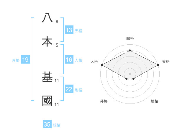 八本 基國さんの地格は22画の1点!