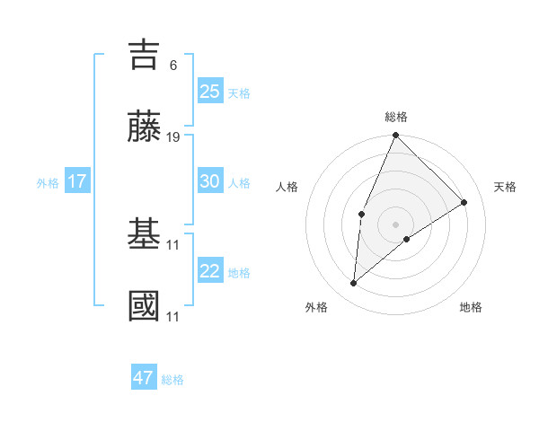吉藤 基國さんを姓名の画数から五運を鑑定