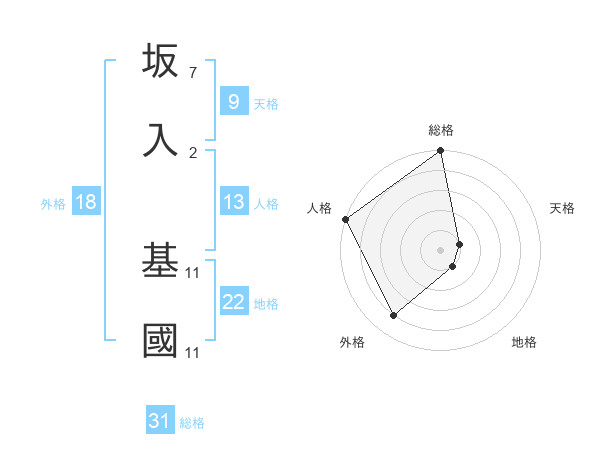 坂入 基國さんの地格は22画の1点!