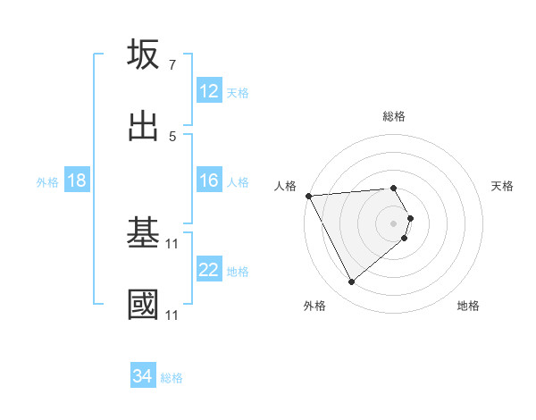 坂出 基國さんの地格は22画の1点!
