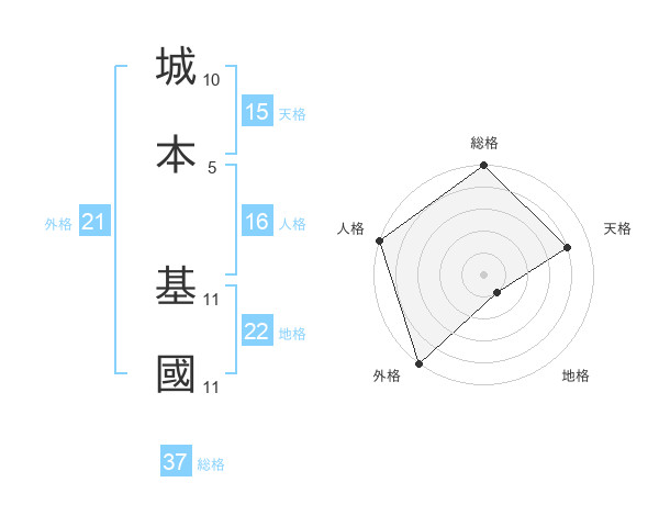城本 基國さんの総格は37画の5点!