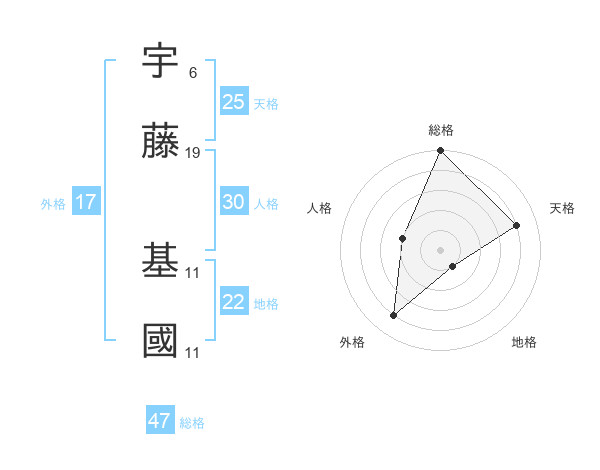 宇藤 基國さんの総格は47画の5点!