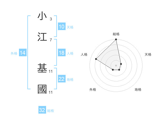 小江 基國さんの総格は32画の5点!