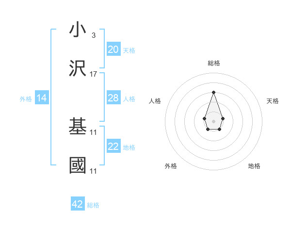 小沢 基國さんの総格は42画の3点!