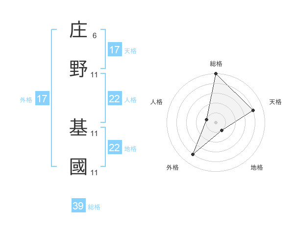 庄野 基國さんの総格は39画の5点!