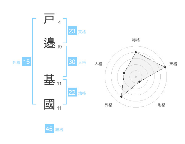 戸邉 基國さんの総格は45画の4点!