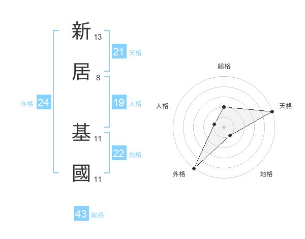 新居 基國さんの外格は24画の5点!