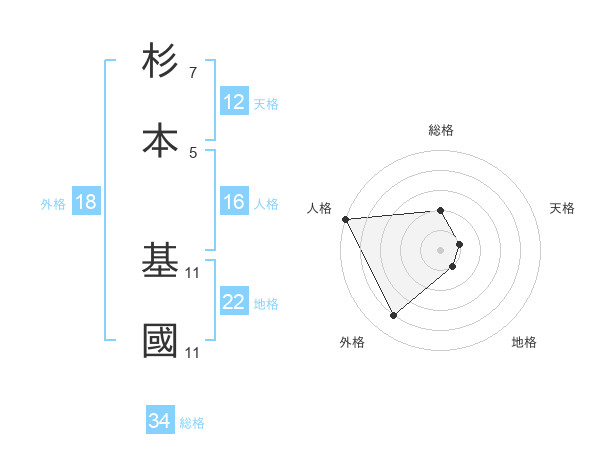 杉本 基國さんの地格は22画の1点!