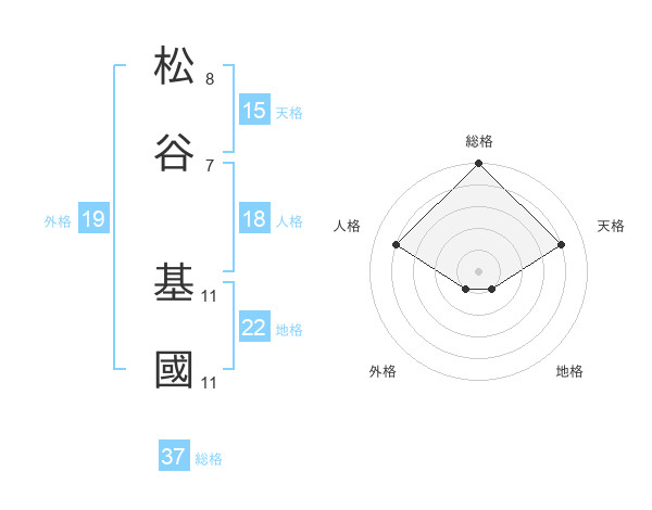 松谷 基國さんの地格は22画の1点!