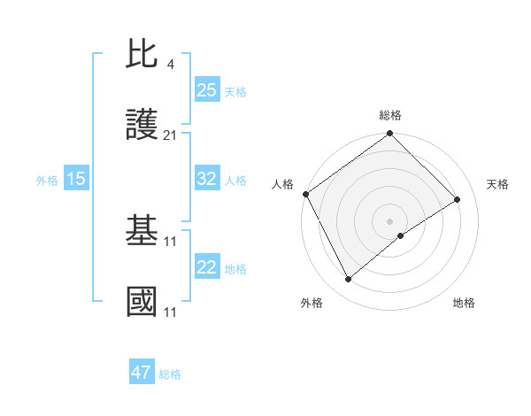 比護 基國さんの総格は47画の5点!