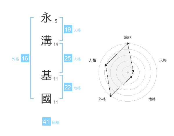 永溝 基國さんの地格は22画の1点!
