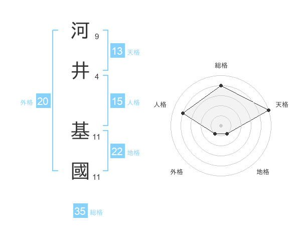 河井 基國さんの地格は22画の1点!
