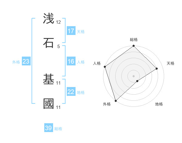浅石 基國さんの天格は17画の4点!