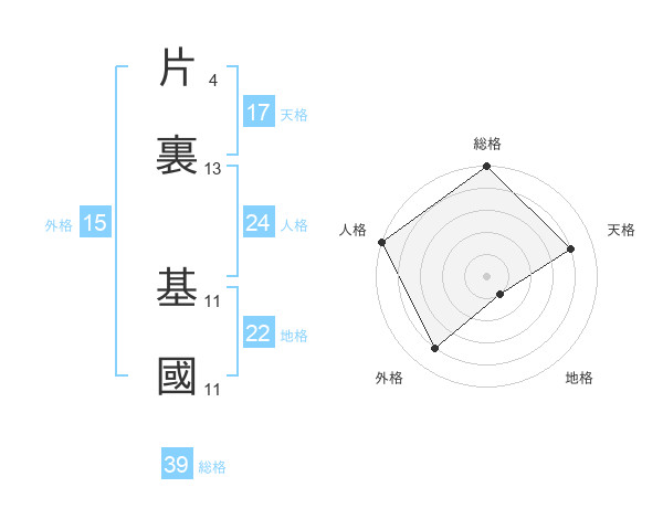 片裏 基國さんの天格は17画の4点!