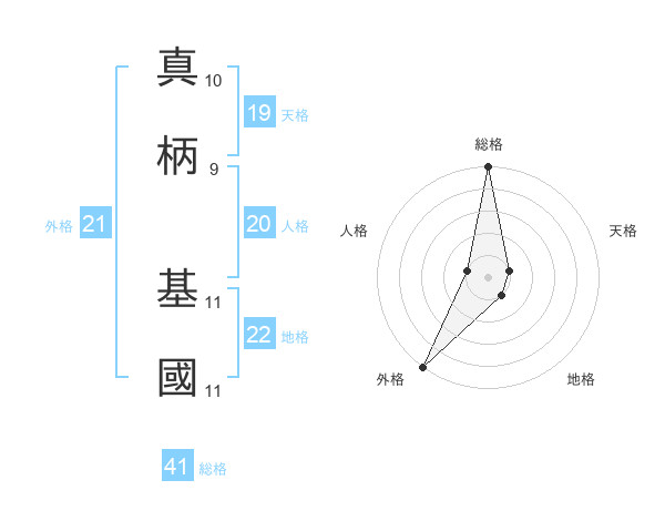 真柄 基國さんの外格は21画の5点!