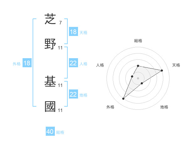 芝野 基國さんの地格は22画の1点!
