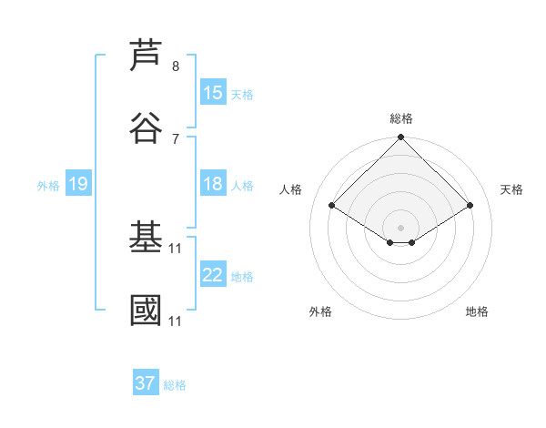 芦谷 基國さんを姓名の画数から五運を鑑定