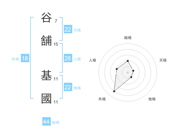 谷舗 基國さんの地格は22画の1点!