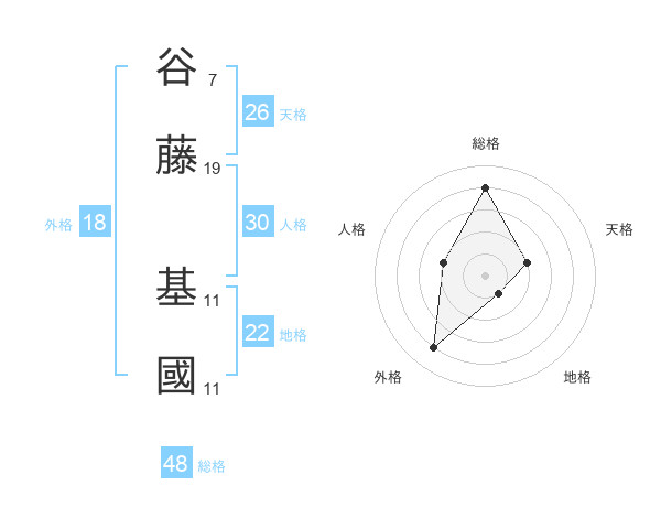 谷藤 基國さんの地格は22画の1点!