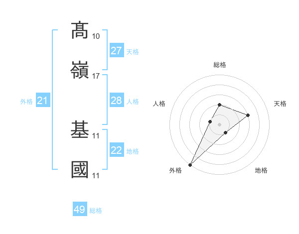 髙嶺 基國さんの外格は21画の5点!