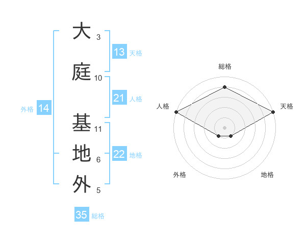 大庭 基地外さんの地格は22画の1点!
