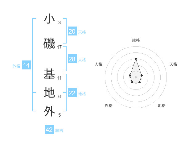 小磯 基地外さんを姓名の画数から五運を鑑定