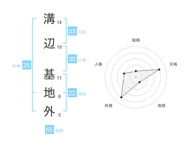 溝辺 基地外さんの総格は55画の1点!