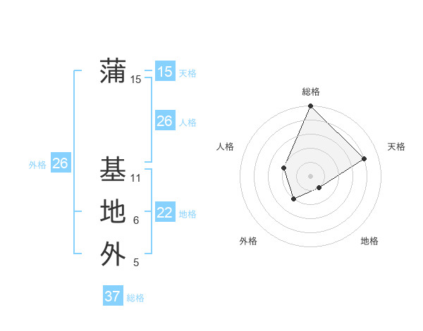 蒲 基地外さんの総格は37画の5点!