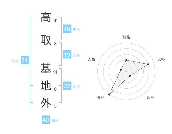 高取 基地外さんの地格は22画の1点!