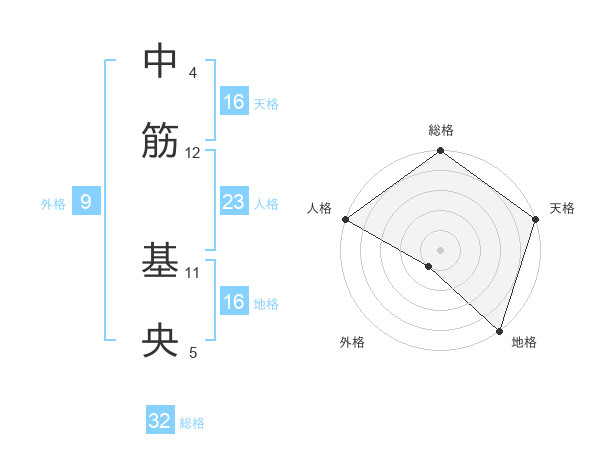 中筋 基央さんの天格は16画の5点!