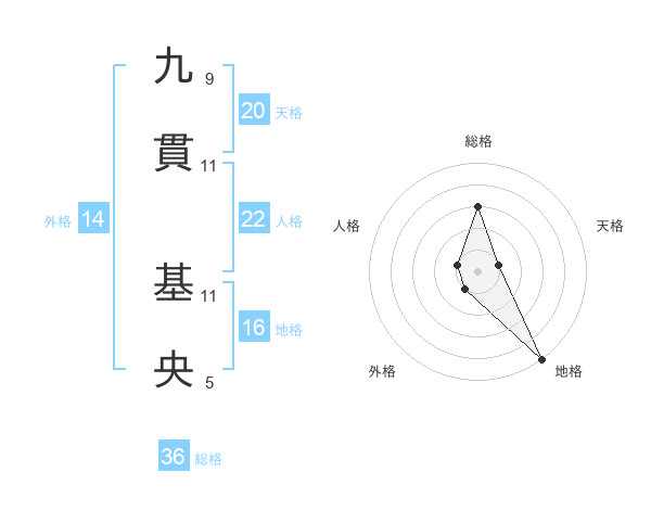 九貫 基央さんを姓名の画数から五運を鑑定