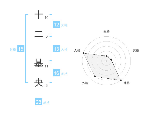 十二 基央さんの地格は16画の5点!