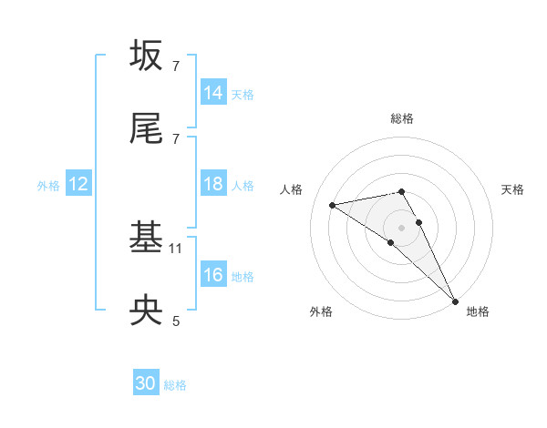 坂尾 基央さんの総格は30画の2点!