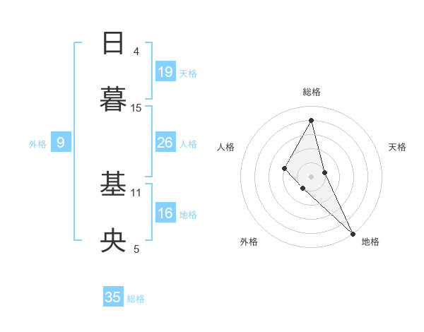 日暮 基央さんの総格は35画の4点!