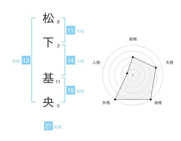 松下 基央さんの総格は27画の3点!