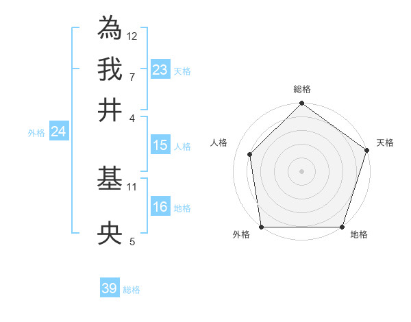 為我井 基央さんの総格は39画の5点!