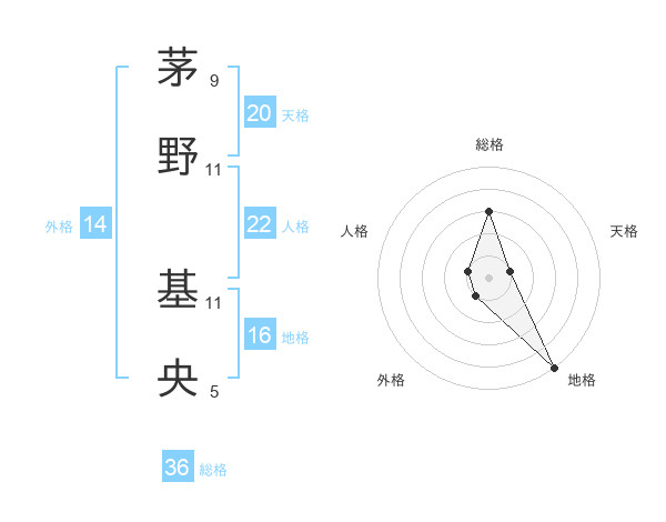 茅野 基央さんの総格は36画の3点!