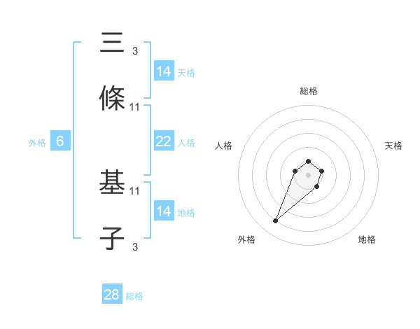 三條 基子さんの外格は6画の4点!