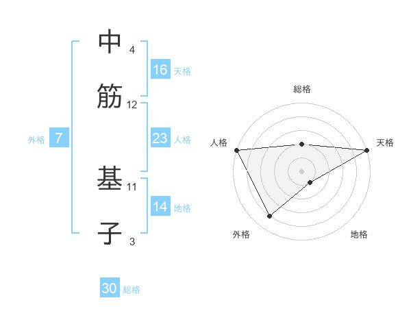 中筋 基子さんの天格は16画の5点!