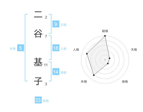 二谷 基子さんの総格は23画の5点!