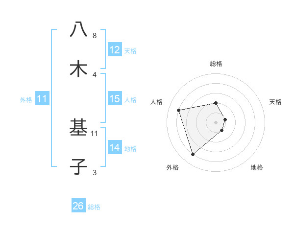 八木 基子さんの総格は26画の2点