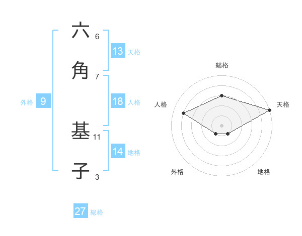 六角 基子さんの総格は27画の3点!