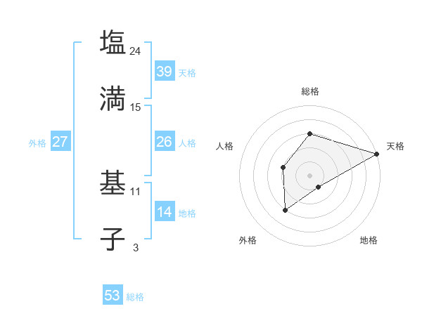 塩満 基子さんの天格は39画の5点!